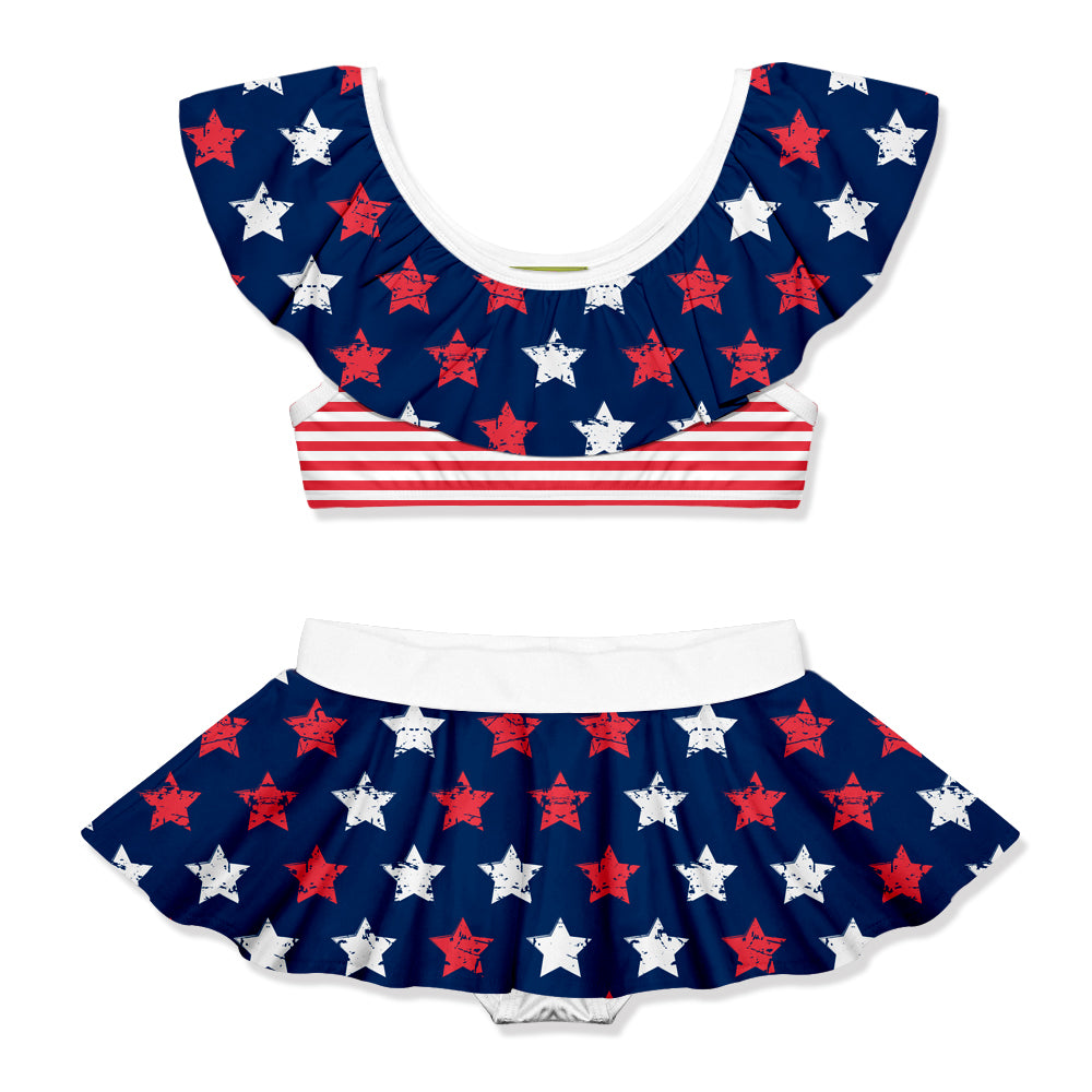 Navy & Red USA Star Ruffle-Neck Skirted Bikini