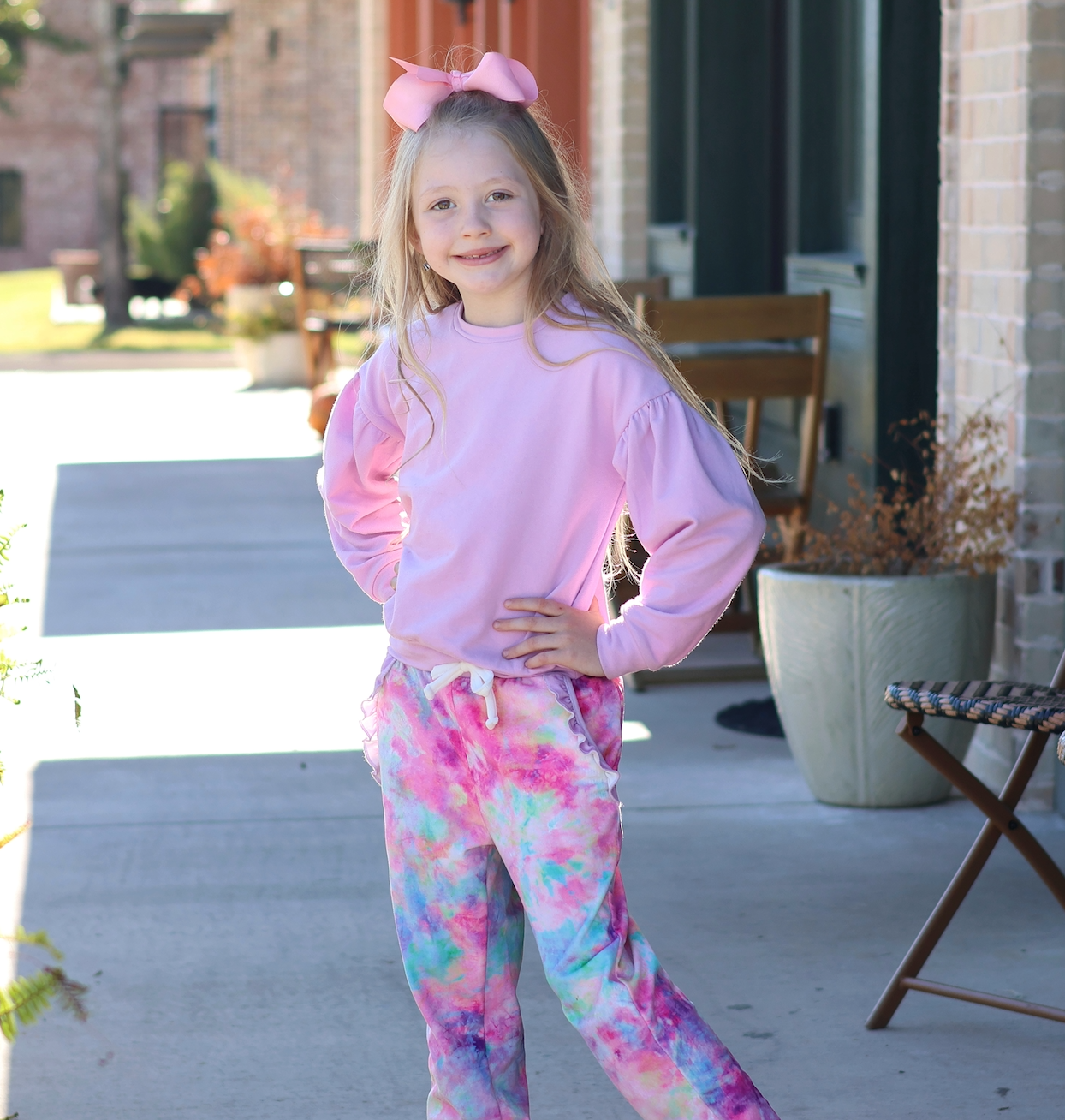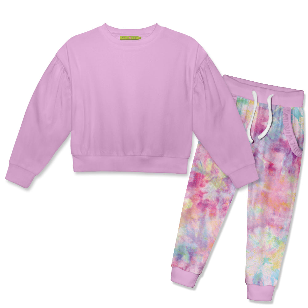 Lilac Crewneck Sweatshirt & Velour Candy Tie-Dye Joggers