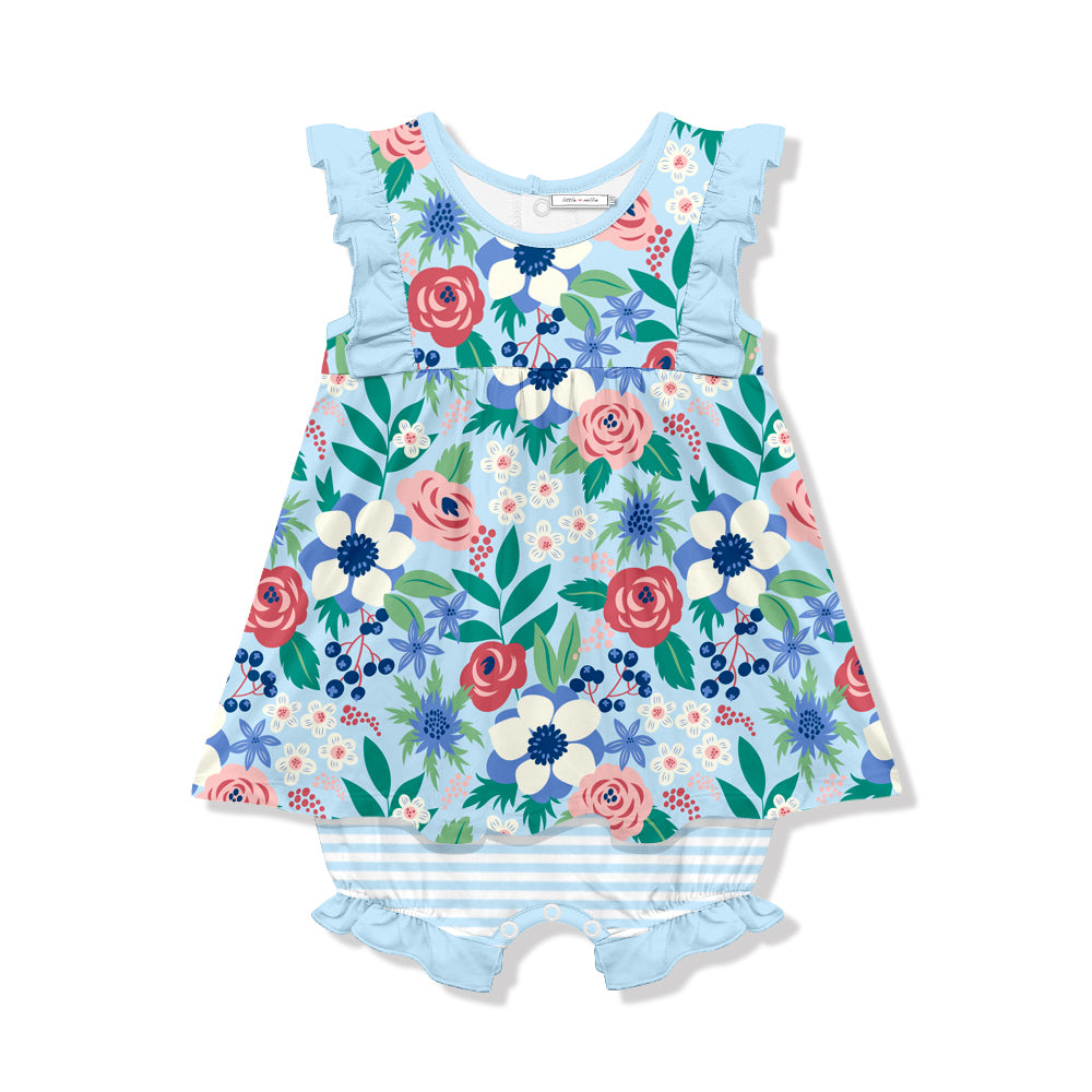Ice Blue Mandy Floral Skirted Bubble Romper