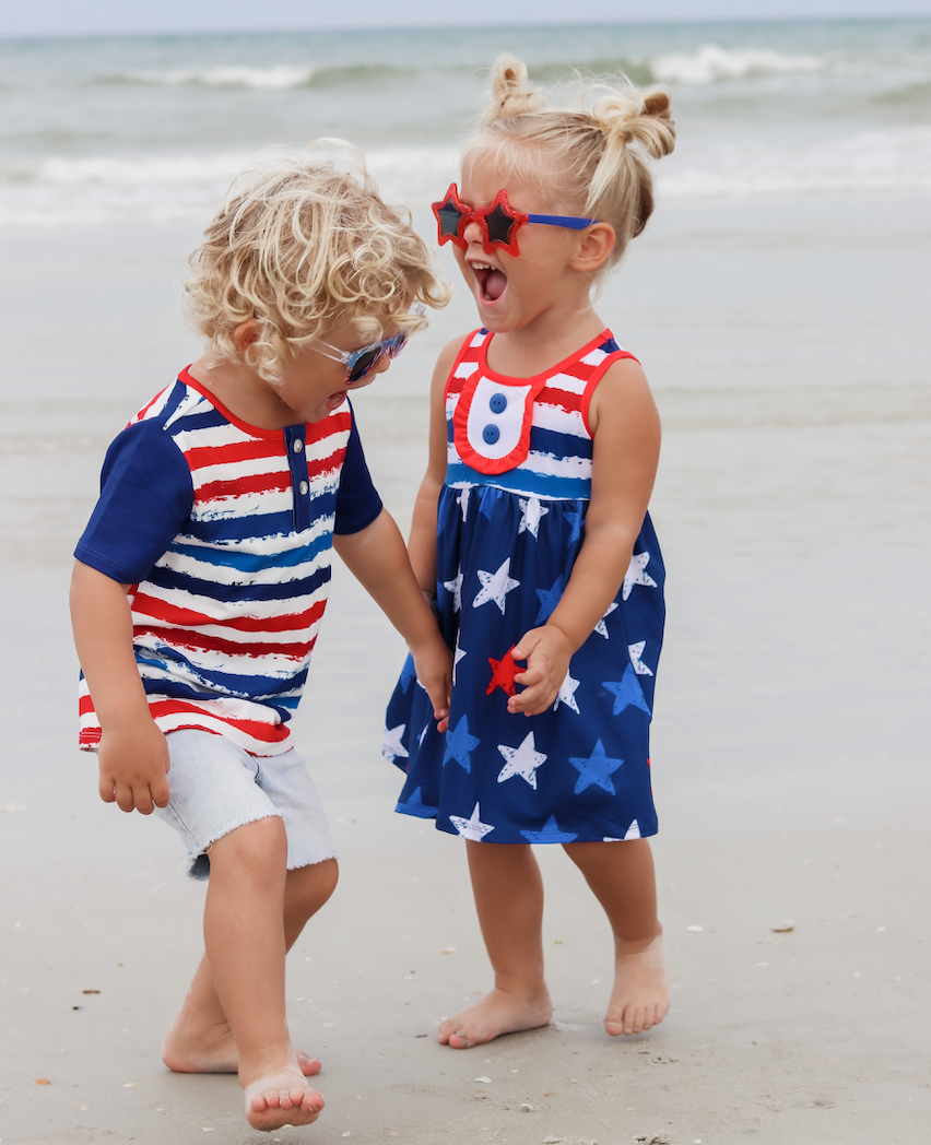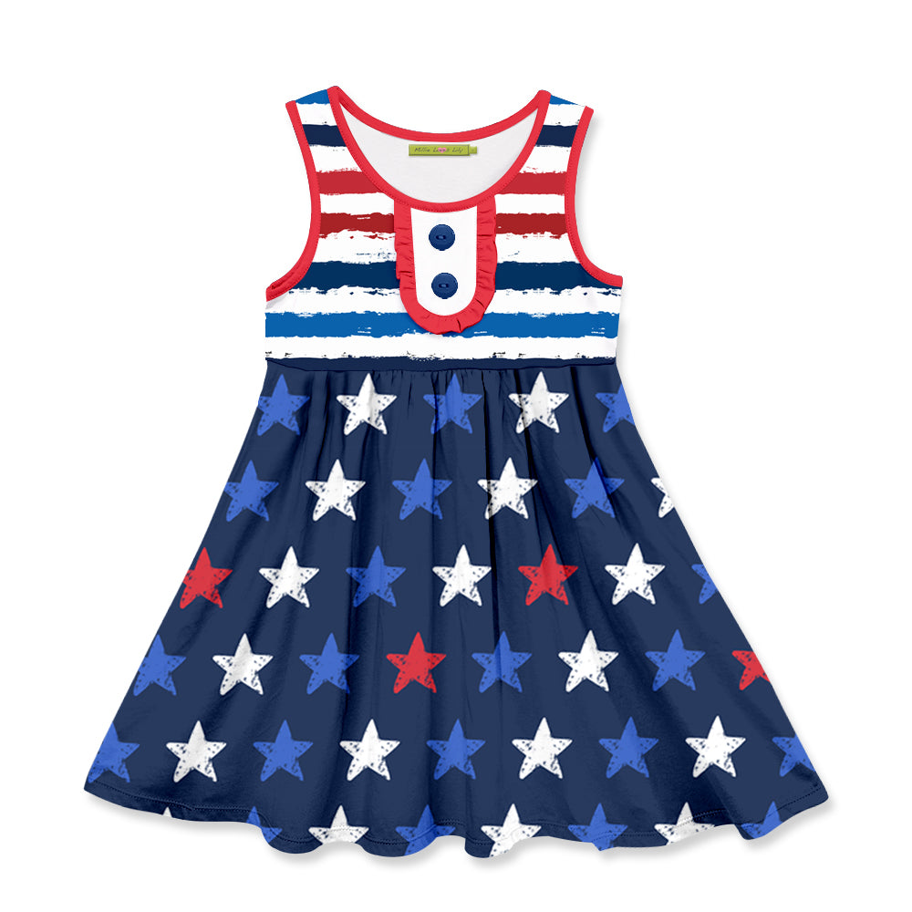 Navy & Red Stars Button-Accent Sleeveless A-Line Dress