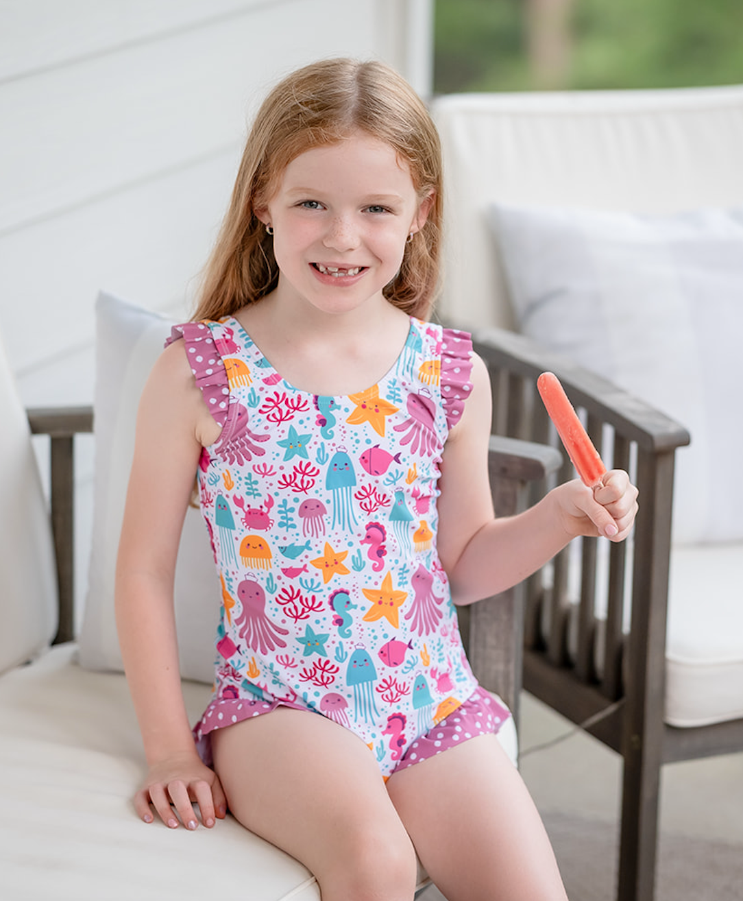 White Ocean Wonder Ruffle-Accent One-Piece