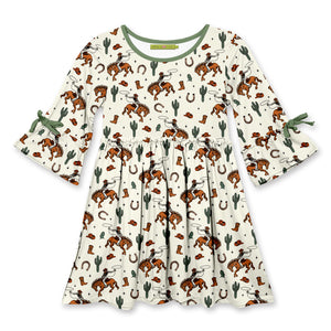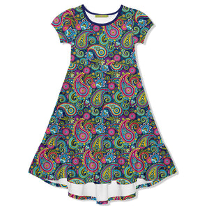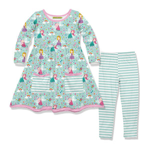 Beautiful outfit! Material is soft, flowy, and stretchy. I ordered the size 10 for my granddaughterand it fits her very nicely with room to move. Good quality!