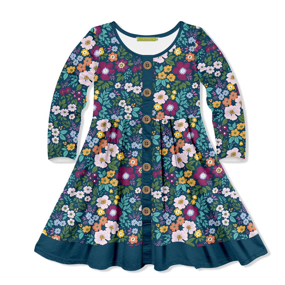 Teal Christi Floral Button-Up A-Line Dress