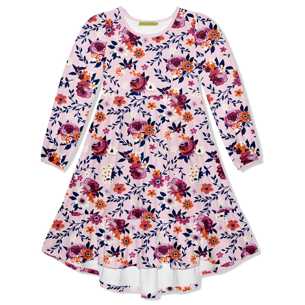 Kids Pink Willow Floral Velour Long-Sleeve Midi Dress