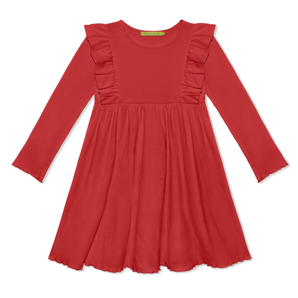 Kids Red Ribbed Ruffle-Shoulder A-Line Dress