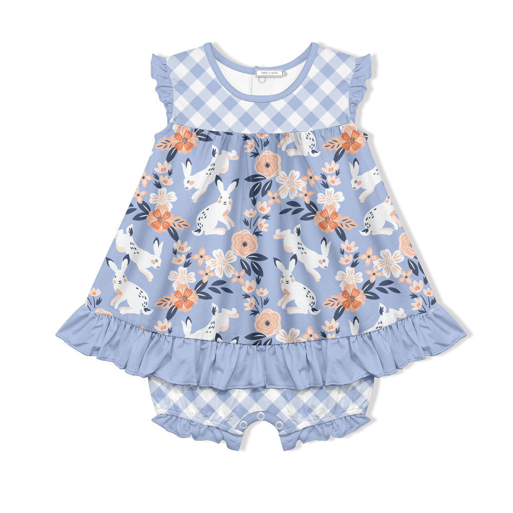 Periwinkle Bunny Meadow Skirted Bubble Romper