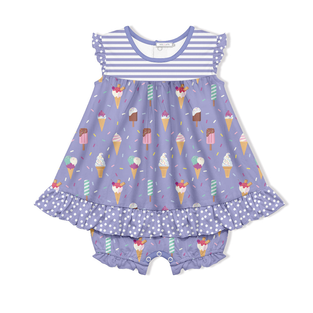 Kids Purple Ice Cream&Sprinkles Skirted Bubble Romper