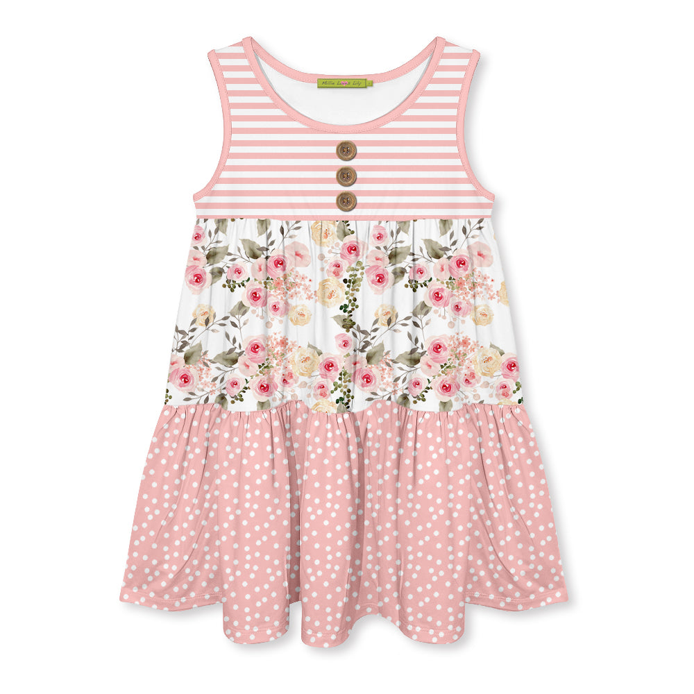 Kids Pink Wild Roses Tiered Sleeveless A-Line Dress