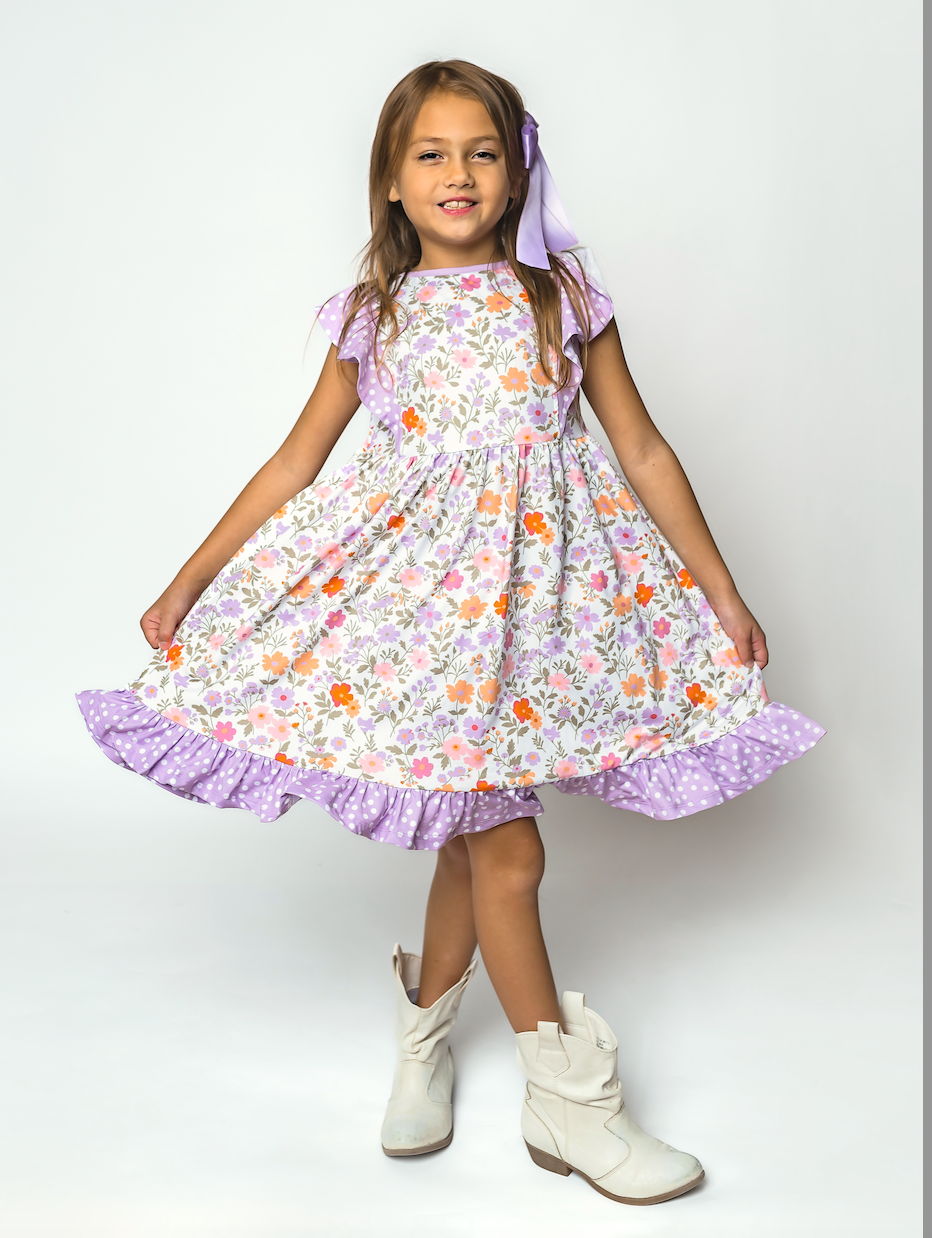 Lilac Beatrice Floral Angel-Sleeve Dress & Shorts