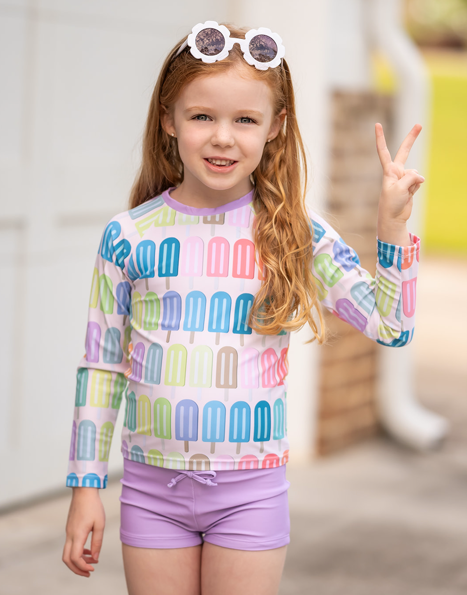 Cream Multicolor Popsicles Long-Sleeve Rashguard Set