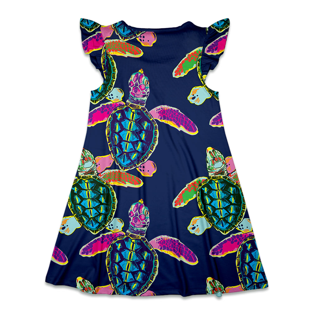 Navy Turtle A-Line Swing Dress