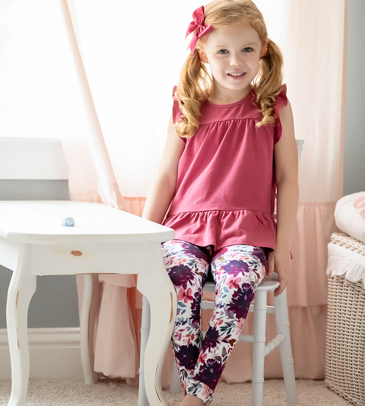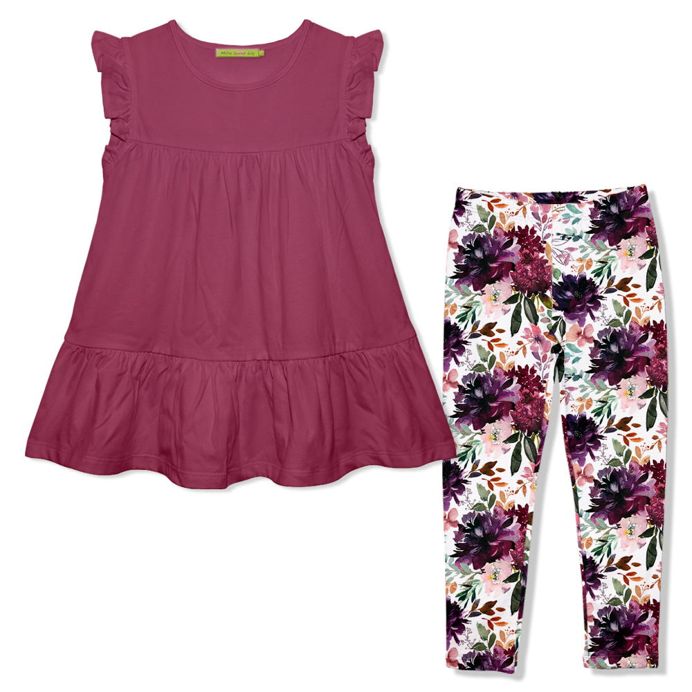 Slate Rose Ruffle-Sleeve Tiered Top & Floral Glory Leggings