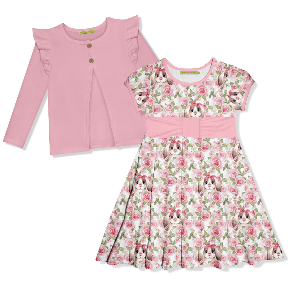 Pink Sweet Rose Cap-Sleeve Dress & Cardigan