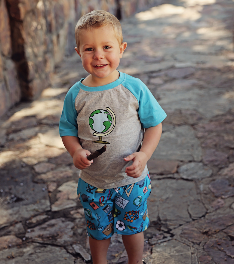 Gray Heather Globe Crewneck Tee & School Stuff Shorts