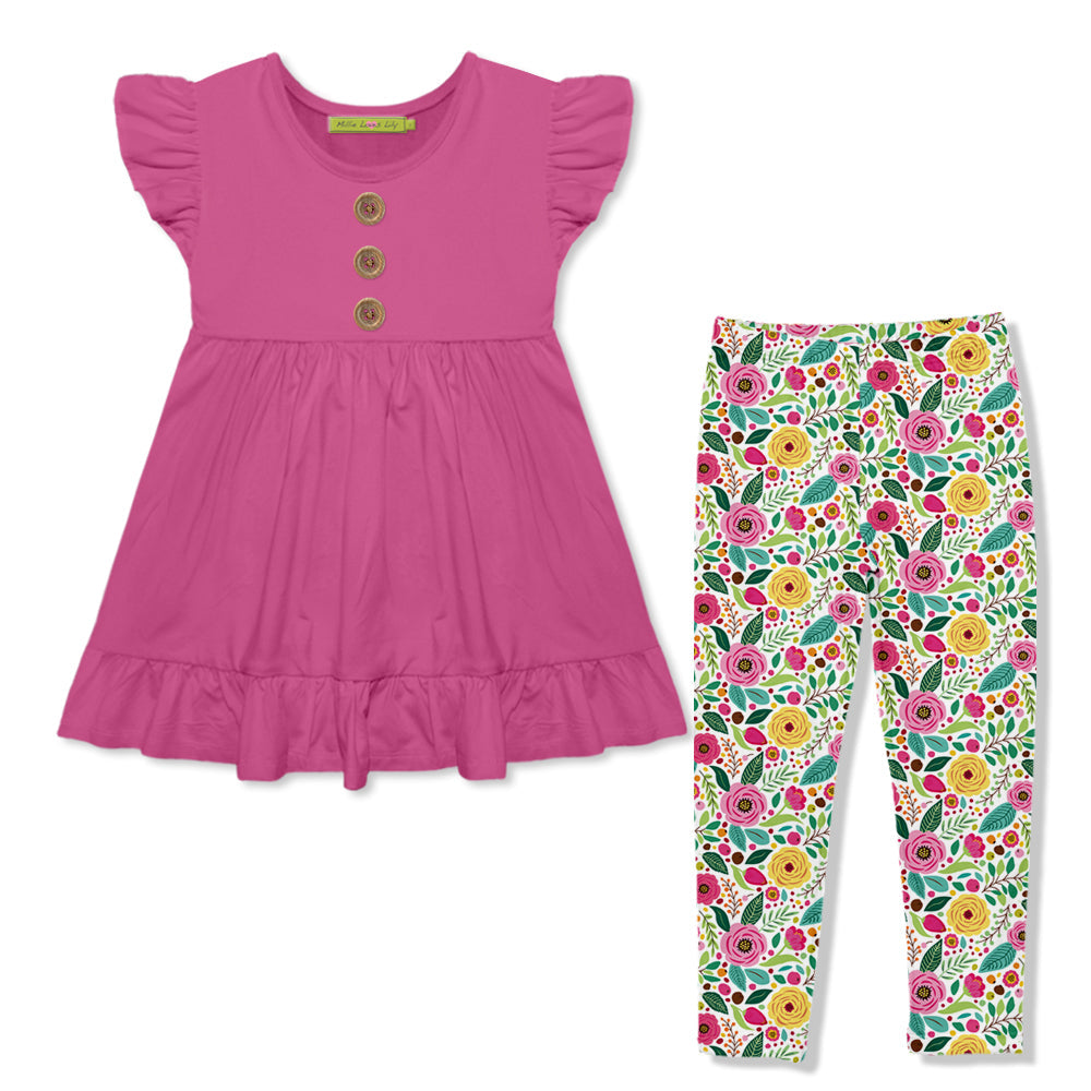 Kids Rose Violet Angel-Sleeve Babydoll Top & Flowering Leggings