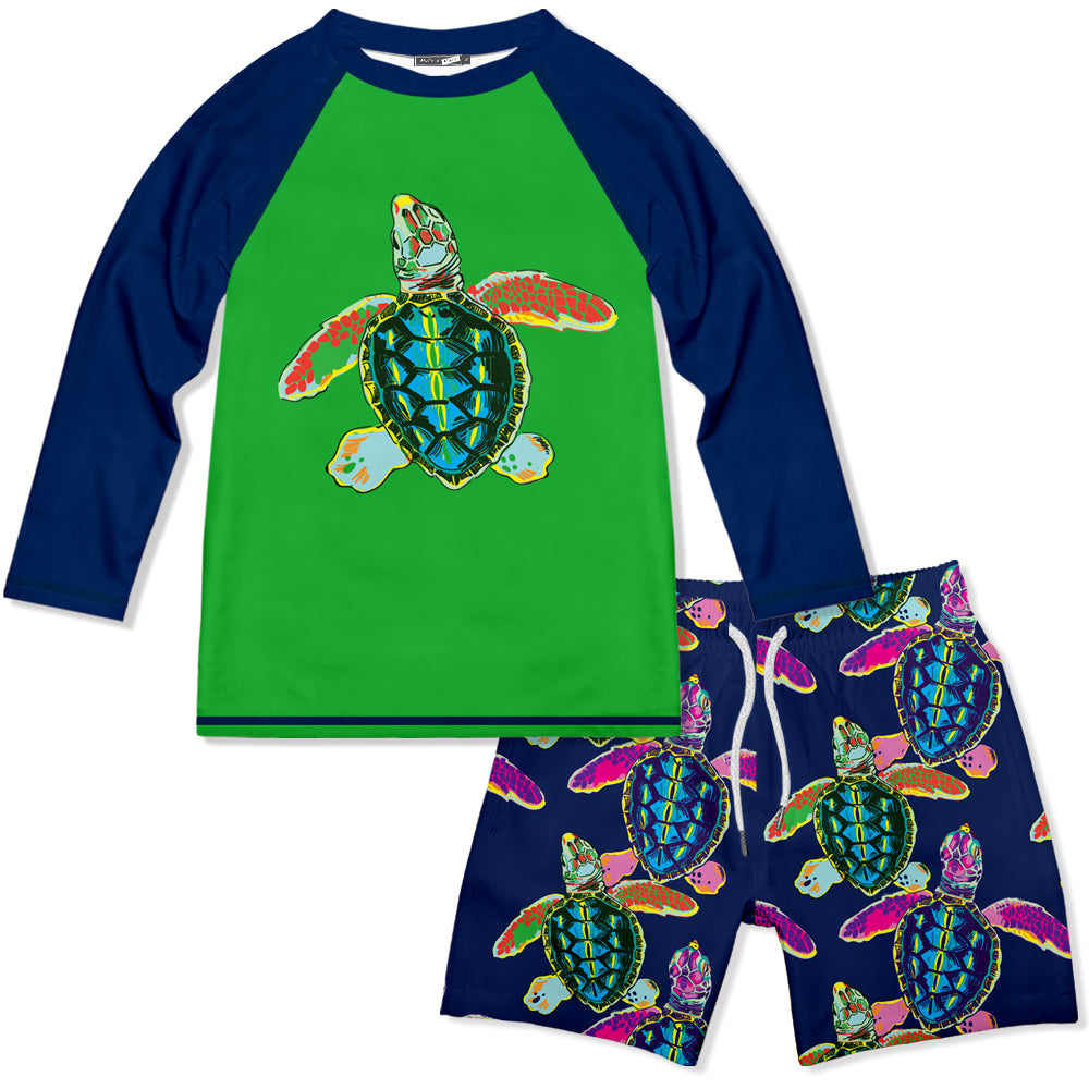 Millie & Maxx | Green & Navy Sea Turtle Long-Sleeve Rashguard Set