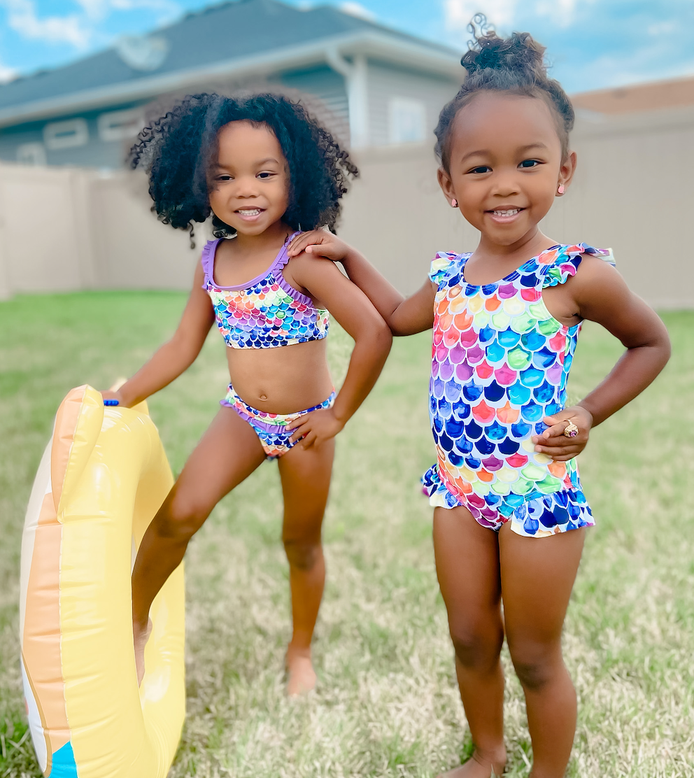 Our perfect fitting 2 pc bikini set featured in our colorful mermaid scale print