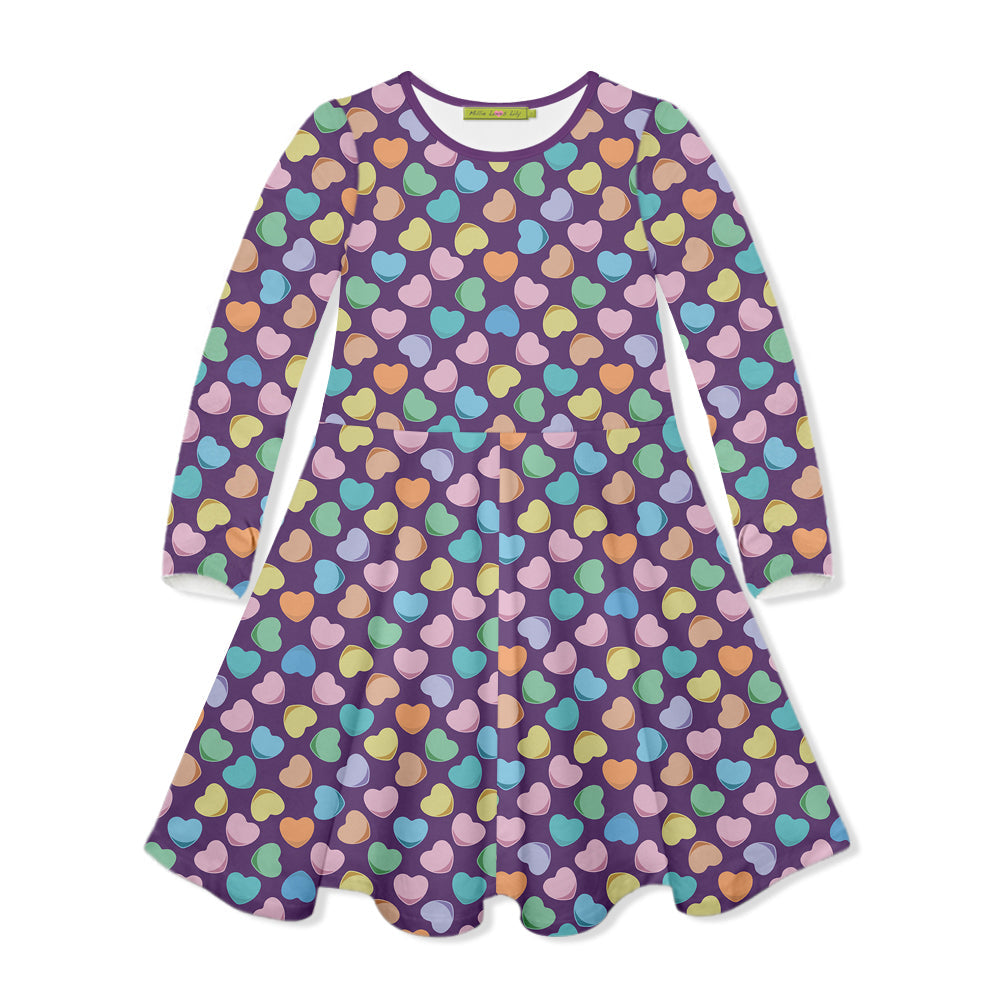 Kids Purple Candy Hearts Yoke A-Line Dress