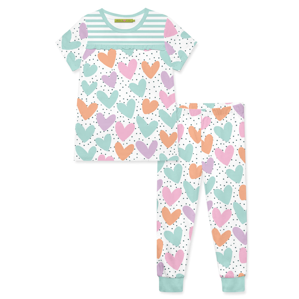 Mint Dot Heart Short-Sleeve Pajama Set