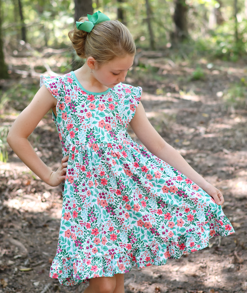 Kids Jade Meadow Flower Angel-Sleeve Dress