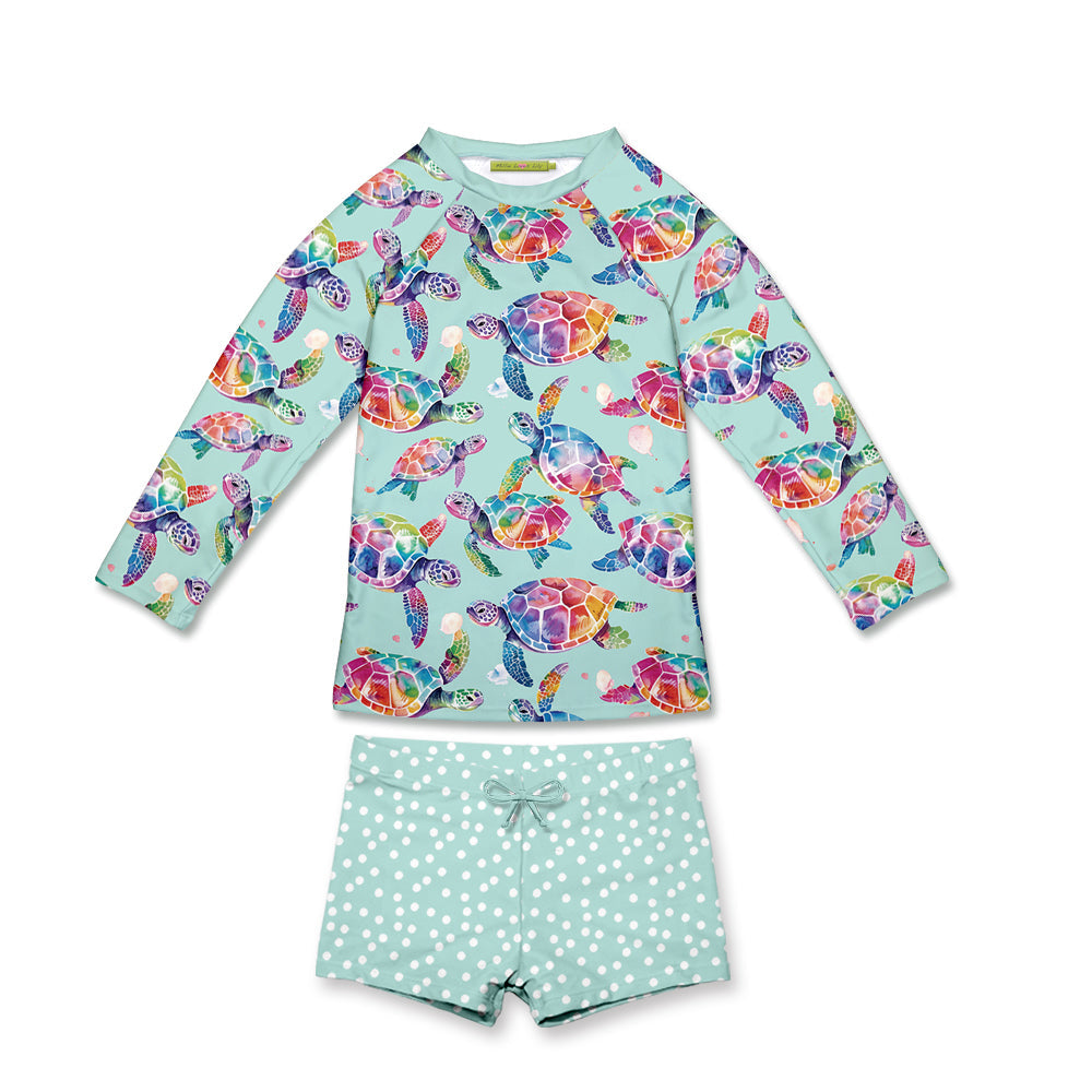 Kids Mint Tie Dye Turtles Long-Sleeve Rashguard Set