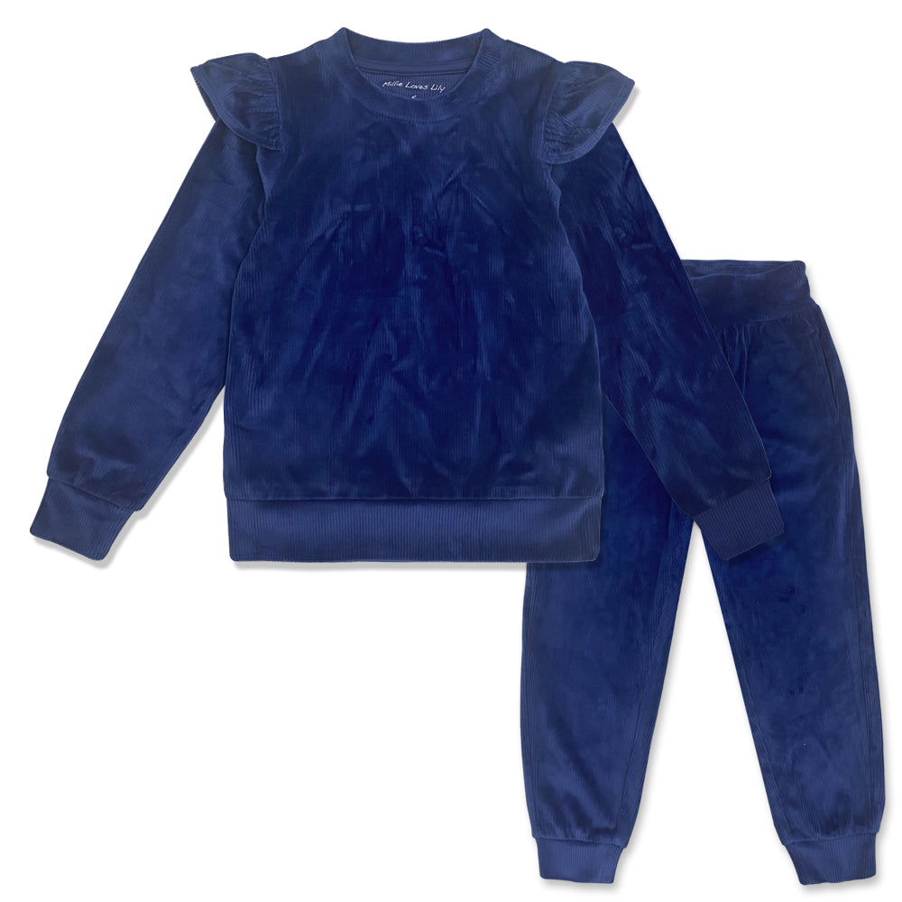 Millie Love Lily Girls' Navy Rib Velour Jogger Set