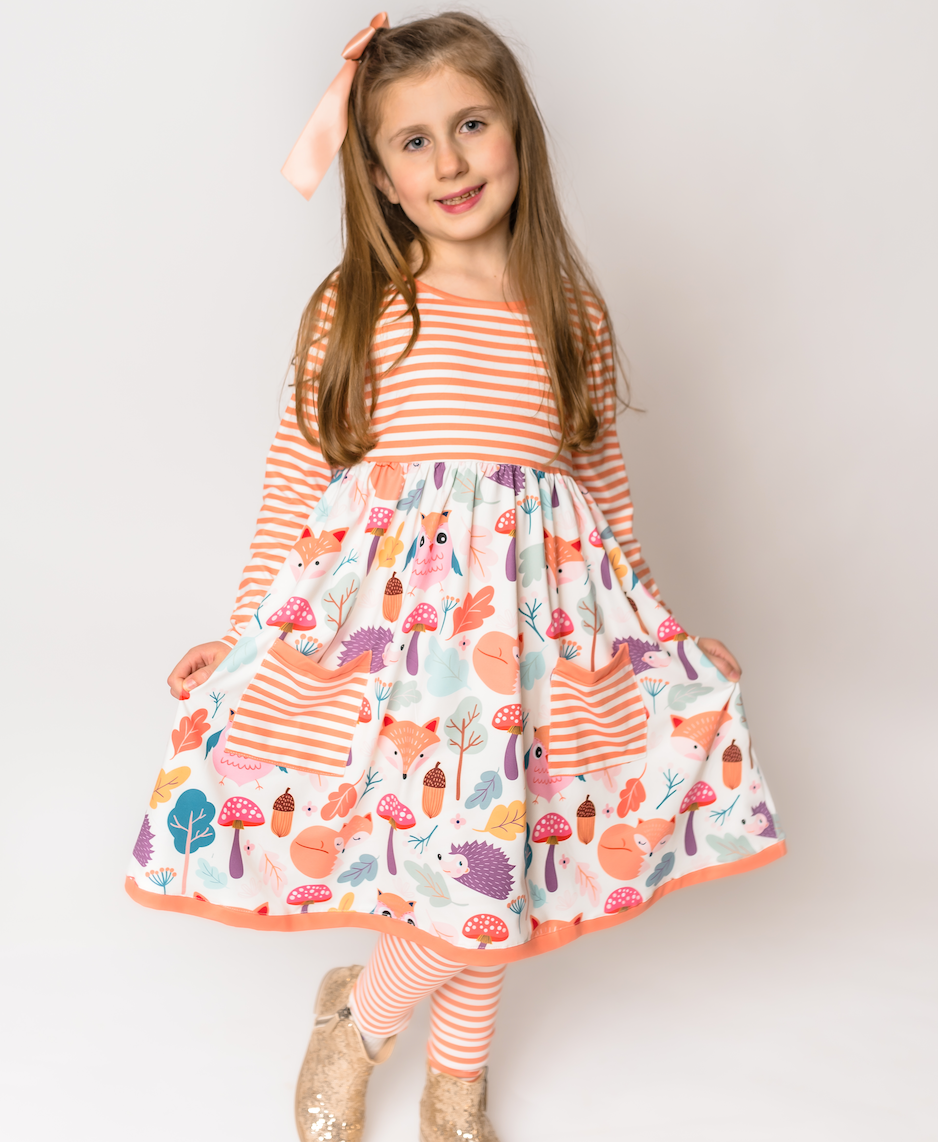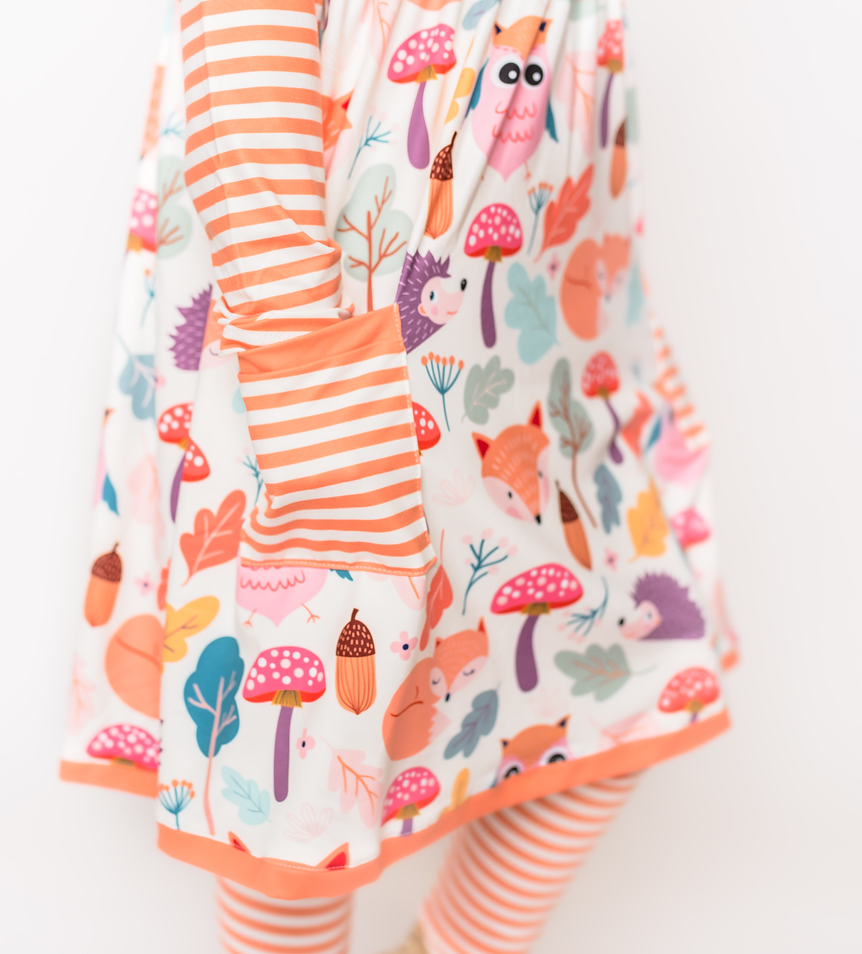 Millie Loves Lily Girls Orange Woodland Owl 2 Pocket Dress & Legging Set