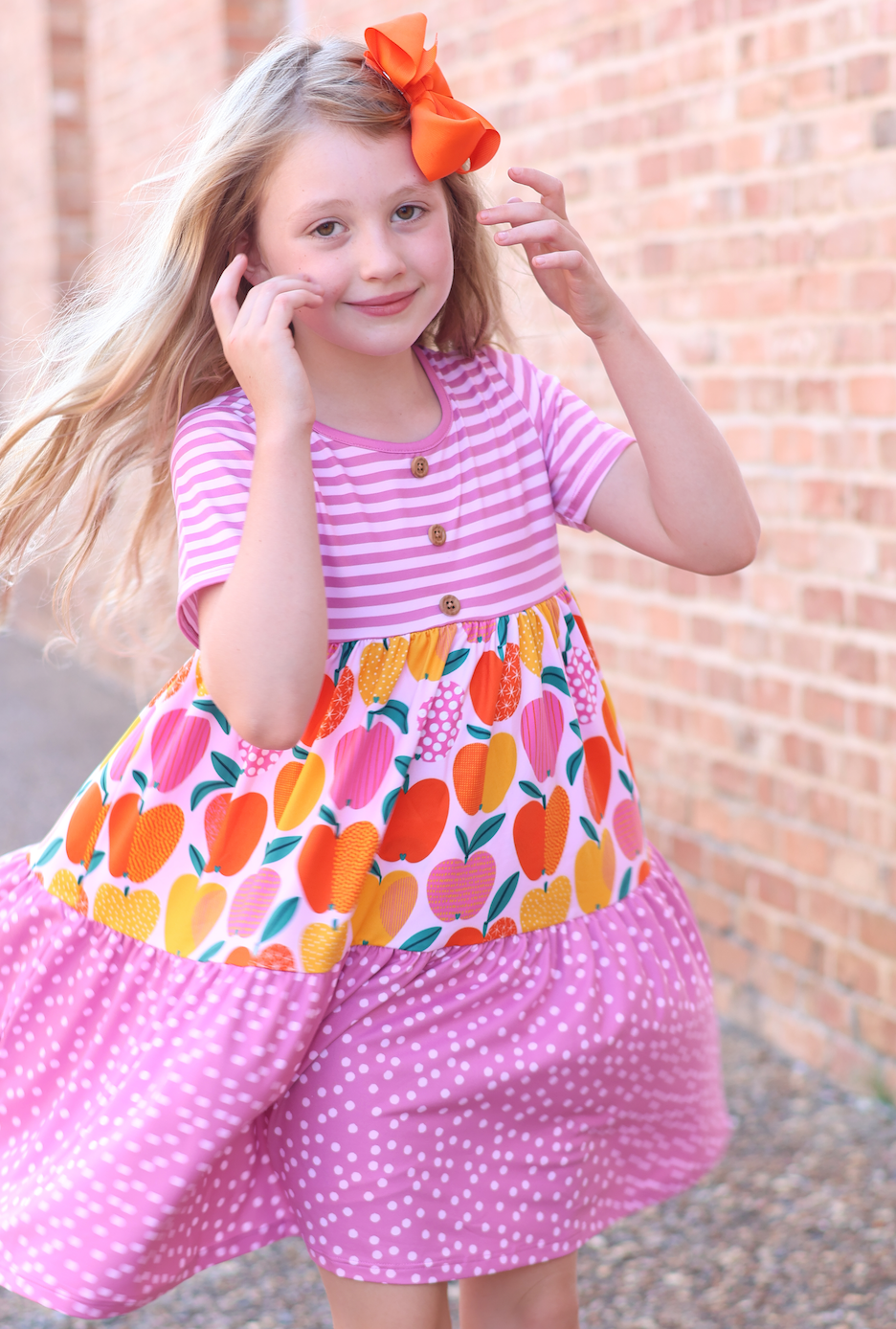 Millie Loves Lily Girls Violet Happy Apple Printed Tiered Short Sleeve Dress