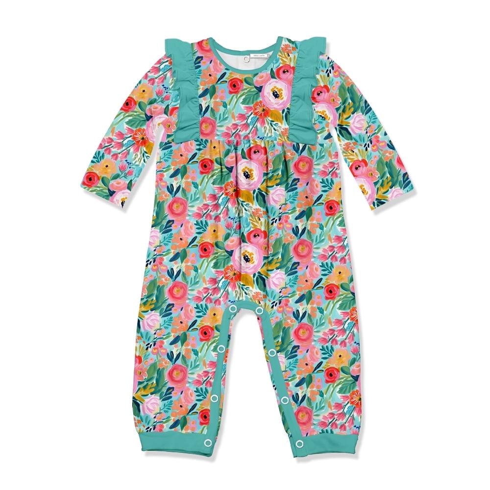 Millie Loves Lily Infant Girl Mint New Beginnings Floral Ruffle Trim 1-Piece